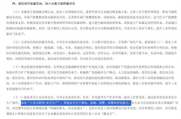 不僅如此,近年來,國家相繼發布了一系列加速傳統制造業轉型升級的指導意見,其中包括工業和信息化部等八部門在2023年12月28日發布的《關于加快傳統制造業轉型升級的指導意見》。該指導意見明確提出了“加快數字技術賦能,全方面推動智能制造”以及“強化綠色低碳發展,深入實施節能降碳改造”等指導意見,詳情如下: